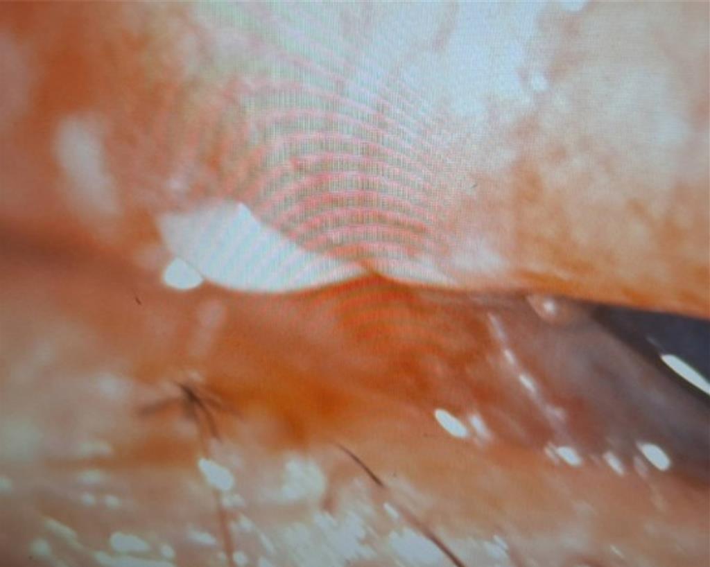 洪啟庭指出,經檢查,發現造成大量流血的部位為右眼上眼皮,約有5公分撕裂傷,立刻予以縫合止血,隨後檢查視力、角膜與鞏膜均無異狀,但有明顯結膜下出血與結膜水腫,且林女仍有嚴重異物感,翻開上眼皮再次檢查,赫然發現有白色小碎片被插在右眼瞼結膜上,緊急取出異物後,證實是馬爾濟斯牙齒碎片,坦言「狗牙卡人眼」實屬罕見,經後續治療,目前林女右眼已恢復正常無大礙。