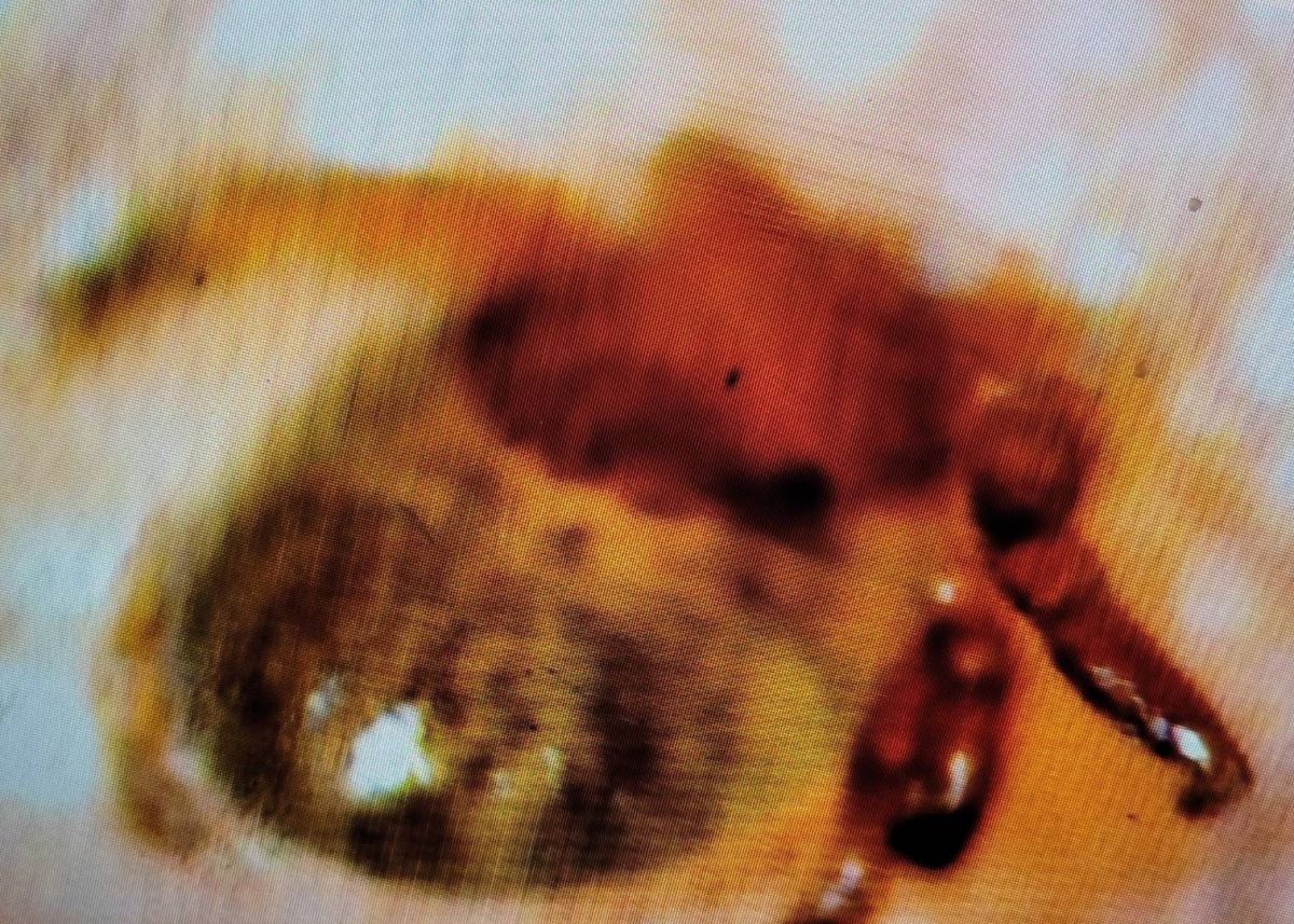 洪啟庭表示,經檢查在裂隙燈下呈現一隻極為罕見的昆蟲,緊密的黏在右下眼瞼,於是嘗試以手術用的眼科儀器將其摘除。後來明顯看見昆蟲上有許多觸鬚、螯肢與爪等牢牢捉緊學童的眼瞼,經向昆蟲專家請教才確定其為恙蟲。