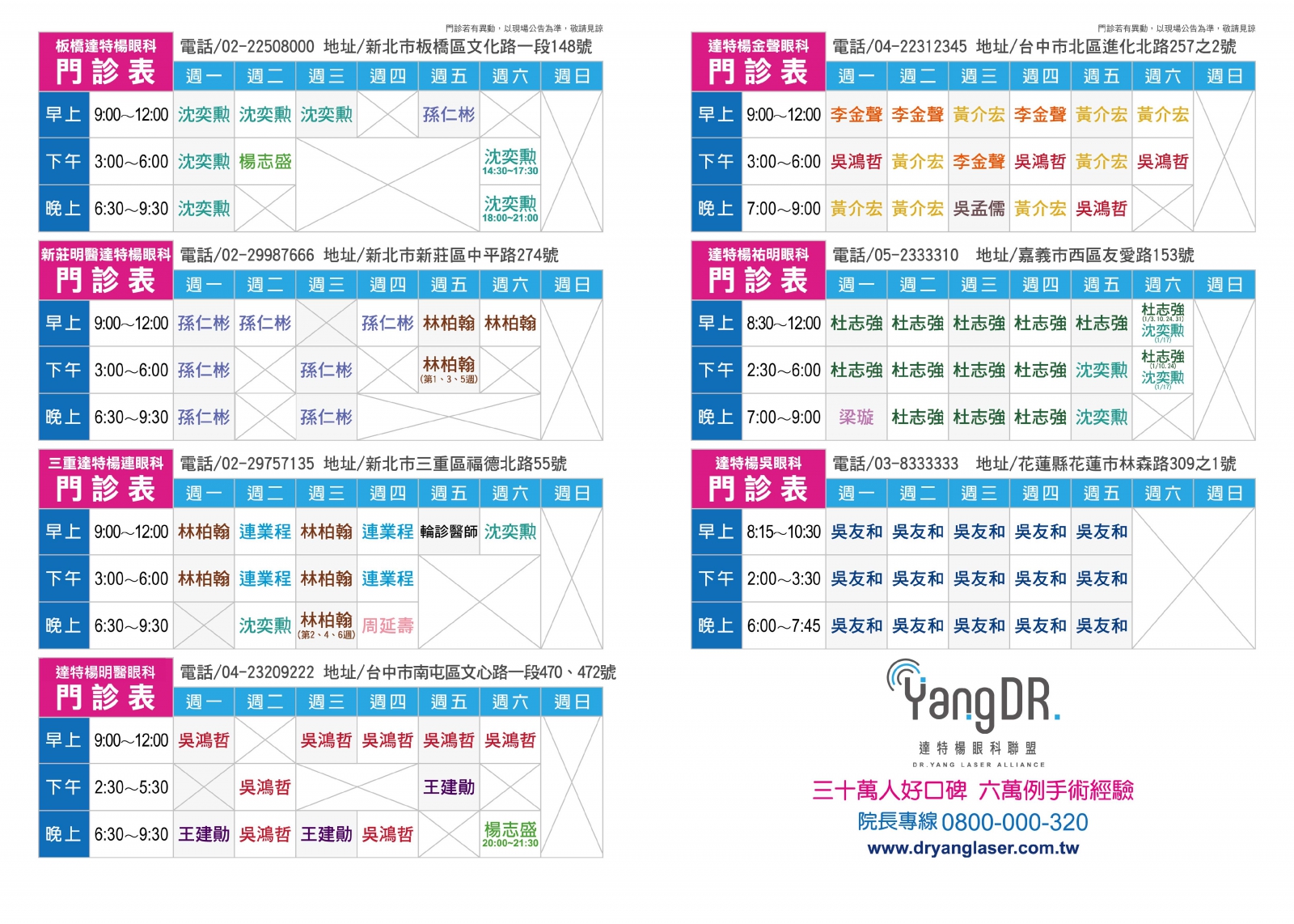 ※ 門診情形若有異動,以現場公告為主,敬請見諒 ※